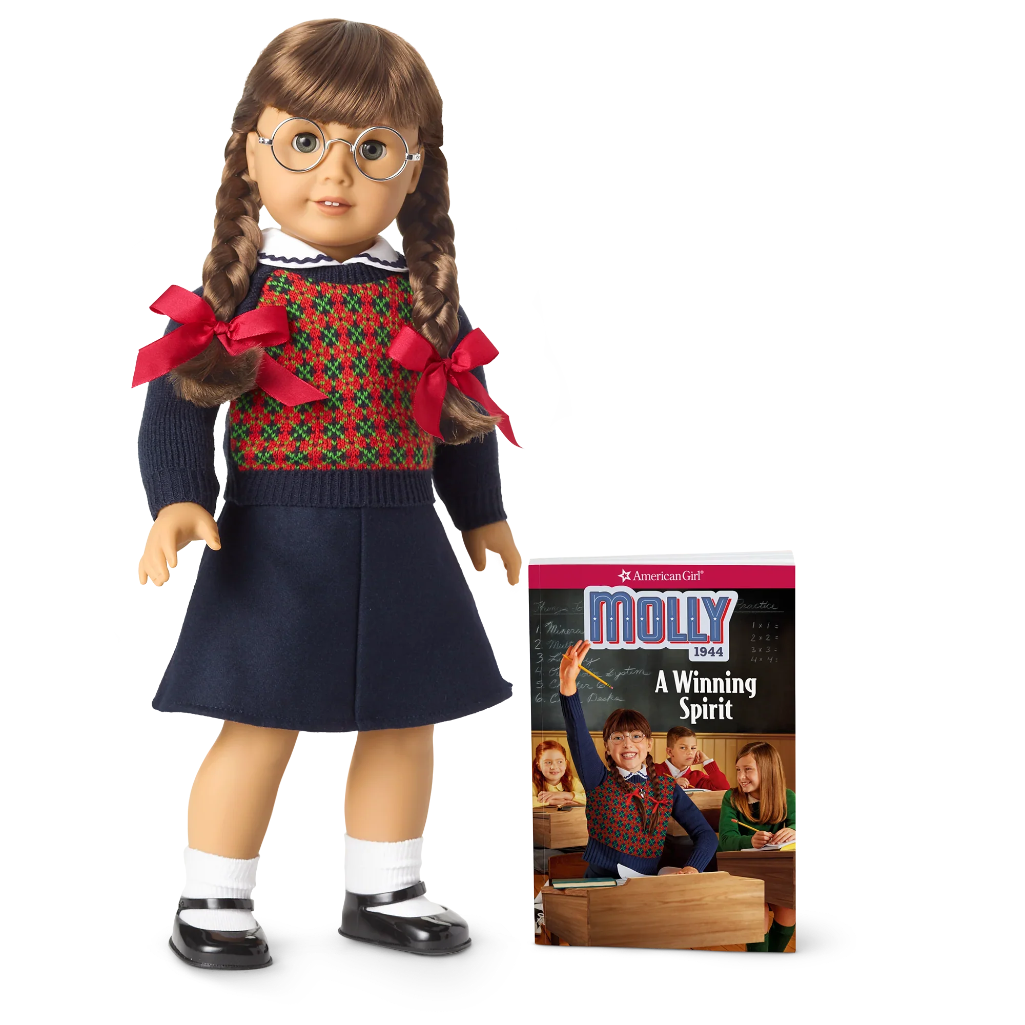 I distinctly remember that moment; following the communion mass, my grandparents walked into our house and my eyes drifted to the long oblong box my grandmother carried. Mom-Mom kissed my cheek and handed over the box saying, “Here she is!” My hands were shaking as I tore the pink wrapping paper to reveal the maroon colored box beneath, with the words American Girl Doll emblazoned in white lettering across the center. I lifted the lid and there she was. My very own Molly; complete with her navy-blue argyle sweater and matching skirt, twin plaited hair with red ribbons, and tiny red purse. And of course, her glasses.